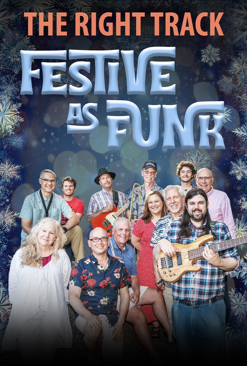It’s time to get Festive as Funk! Join Midcoast Maine’s own THE RIGHT TRACK as they celebrate the holidays playing festive and classic soul, funk, and R&B hits. This 11-piece band features a stellar horn section that will have you ready to funk the halls in style! Voted the Midcoast Villager’s “Best of the Best” band two years running, don’t miss this chance to see your favorite band serve up your favorite holiday hits.
